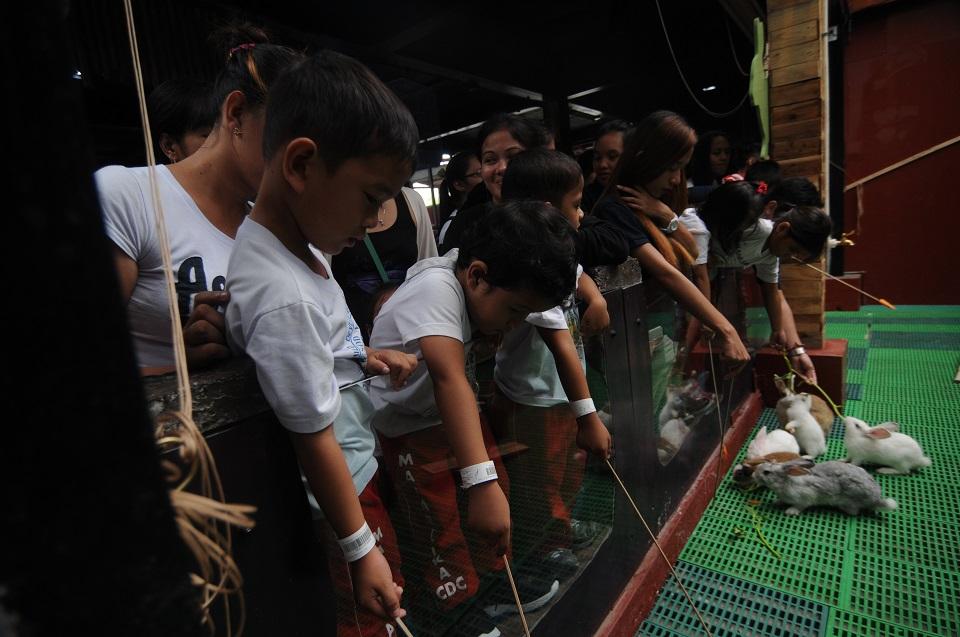 Children feed rabbits during the opening of the Barnyard and Birdhouse attractions at Manila Ocean Park on November 10, 2016. Photos: Danny Pata