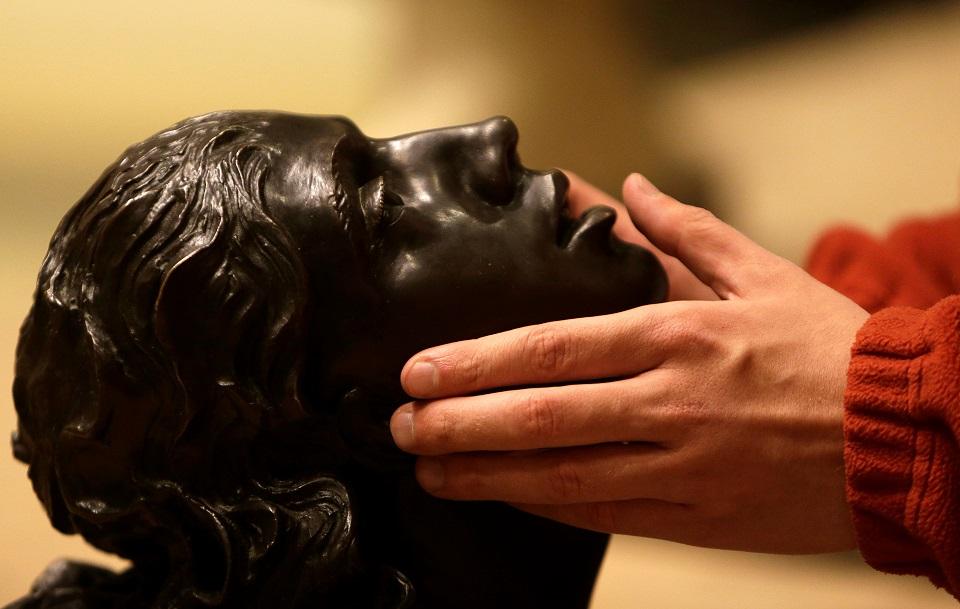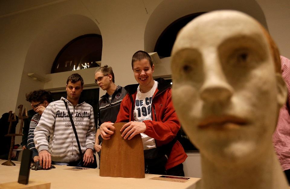 Blind people touch sculptures during a special exhibition for people with visual disabilities in Prague, Czech Republic, December 5, 2016. Picture taken December 5, 2016. REUTERS/David W Cerny