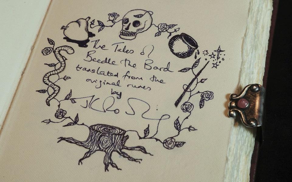 "The Tales of Beedle the Bard" is one of six copies the author produced to give as gifts to those who helped bring the story of the boy wizard to life, and is seen fetching £300,000-£500,000 ($378,000-$630,000) at Tuesday's sale.