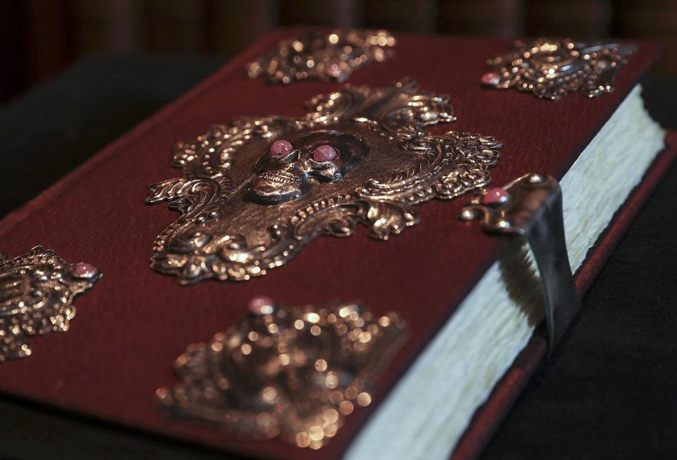 Bound in brown Morocco leather, the copy is adorned with silver ornaments with a skull in the center and has seven mounted rhodochrosite stones, according to Sotheby's. — Reuters