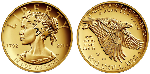 It is the first in a series of gold coins featuring Lady Liberty, which has been used on American coinage since the late 1790s, as an ethnic woman, Mint Principal Deputy Director Rhett Jeppson said in a statement.