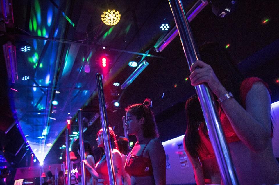 Businesses use a well worn loophole to avoid prosecution, hiring sex workers inside the bars merely to entertain and talk to patrons.