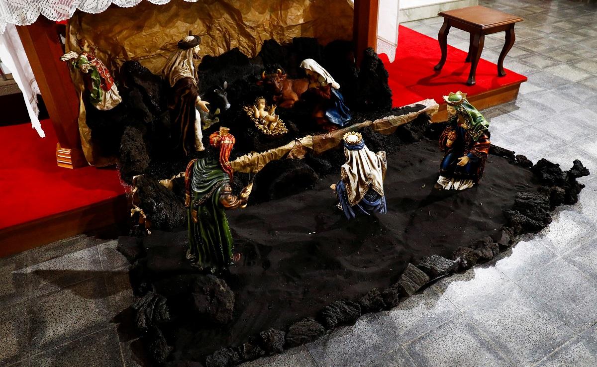 LA PALMA, Spain — Volcanic ash and lumps of lava blasted out of the Cumbre Vieja volcano on the Spanish island of La Palma have become part of Christmas nativity scene in a nearby church.