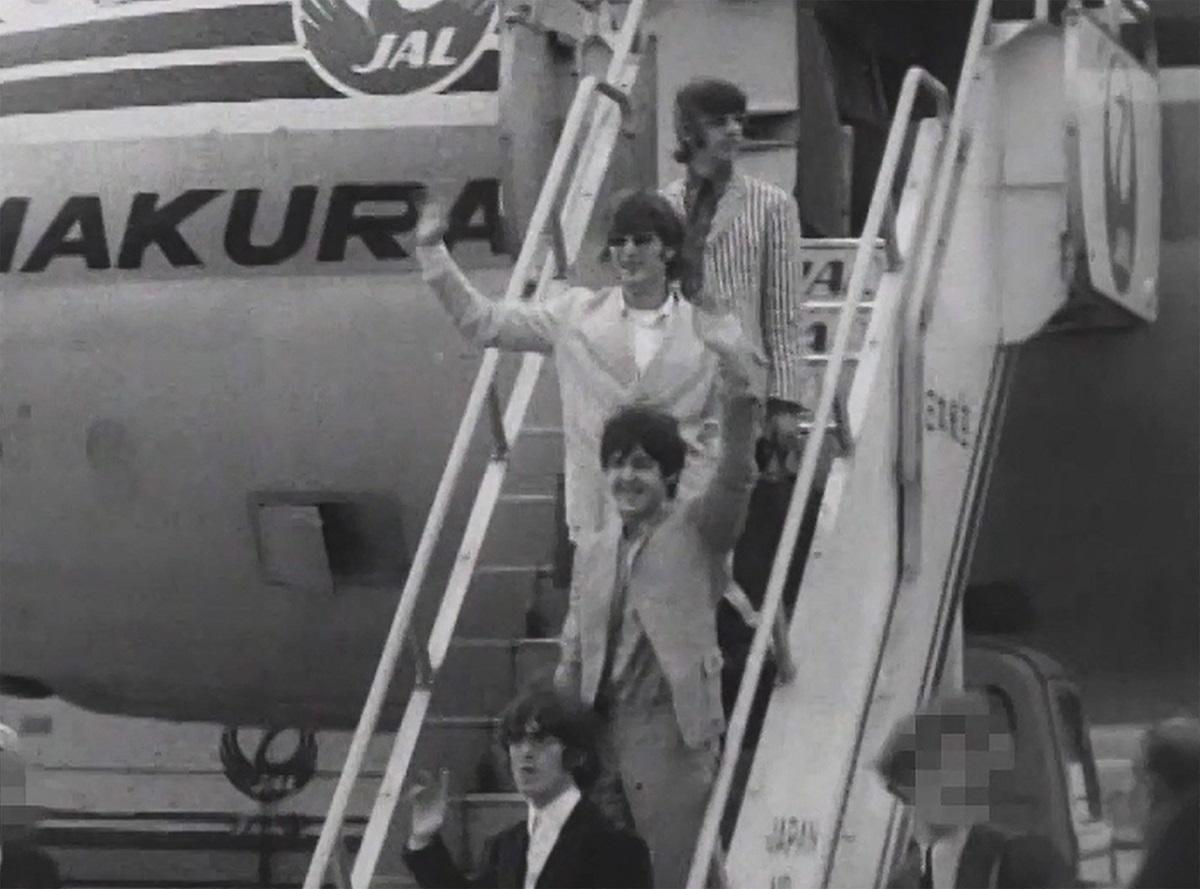 It shows the musicians descending from a plane in matching kimonos and performing to a rapturous crowd at the Budokan arena in Tokyo, as well as behind-the-scenes police operations.