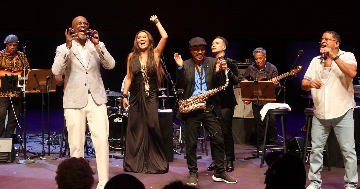 Then the legendary a capella sextet, Take 6, composed of Claude V. McKnight III, Mark Kibblle, David Thomas, Joey Kibble, Khristian Dentley and Alvin Chea, brought the house down with their cool and suave renditions of "Back in Love," "I've Got Life/Spread," "Wade," "Windmills," "Change the World," "Stand By Me," "Roof Garden" and the finale with the band and everybody joining them on stage, "Got to Get You Into My Life."