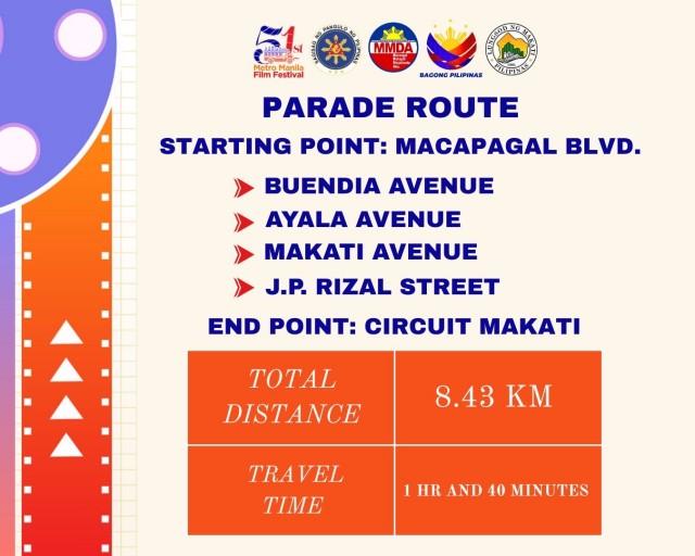 The parade will be followed by a program and performances at the Circuit Makati, according to the MMDA, with audiences having the chance to meet and greet with the stars.