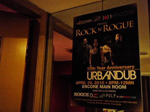 The words dress code and rock concert hardly go together, but at the kick off of the Rock âNâ Rogue series, fans had to bear with the policy and dress appropriately as Urbandub's 10th year anniversary was celebrated at Encore. If you don't know what Encore is, it's what Embassy used to be, and yes, if you're getting pictures of underage girls in makeup and high heels, you're right on track. Last night's concert started late, like all proper rock shows, especially in the Philippines. If the eager fans, called 'Dubistas' were predicting the delay, they didn't see it as a reason to arrive late, themselves. Ticketholders were lined up as early as 6 pm, in the summer rain, too.