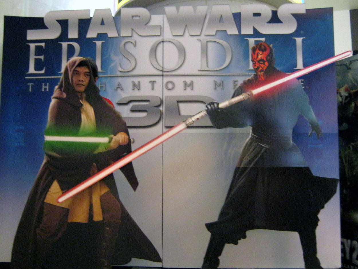A sci-fi fan could not resist pretending to be a Jedi master when he came across this movie promo display near a movie theater. Earl Rosero