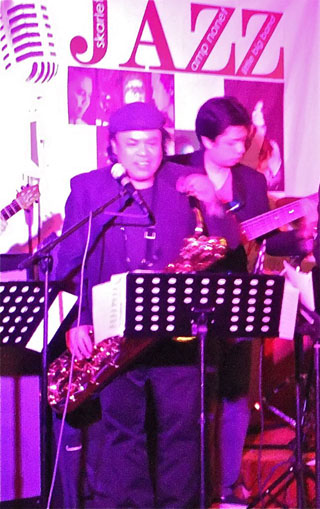 Skarlet and the latter party had a gig at the Dusit Thani mezzanine last April 16, 2012. They were amazing, as they always are. The capacity-crowd reacted warmly to the music, applauding solos and cleverly-turned improvised phrases. A few stalwart audience members even jitterbugged to the more infectious numbers. Heartening.