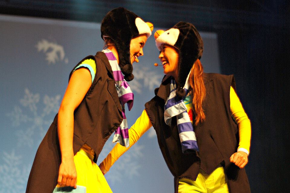 As the group drifted on their ship called Happy Parrot, the stage transformed into a pop extravaganza. The show was not short of props: there were icebergs and penguins when the group was stranded on icy shores, and then it turned into a tropical adventure as they neared their destinaiton.