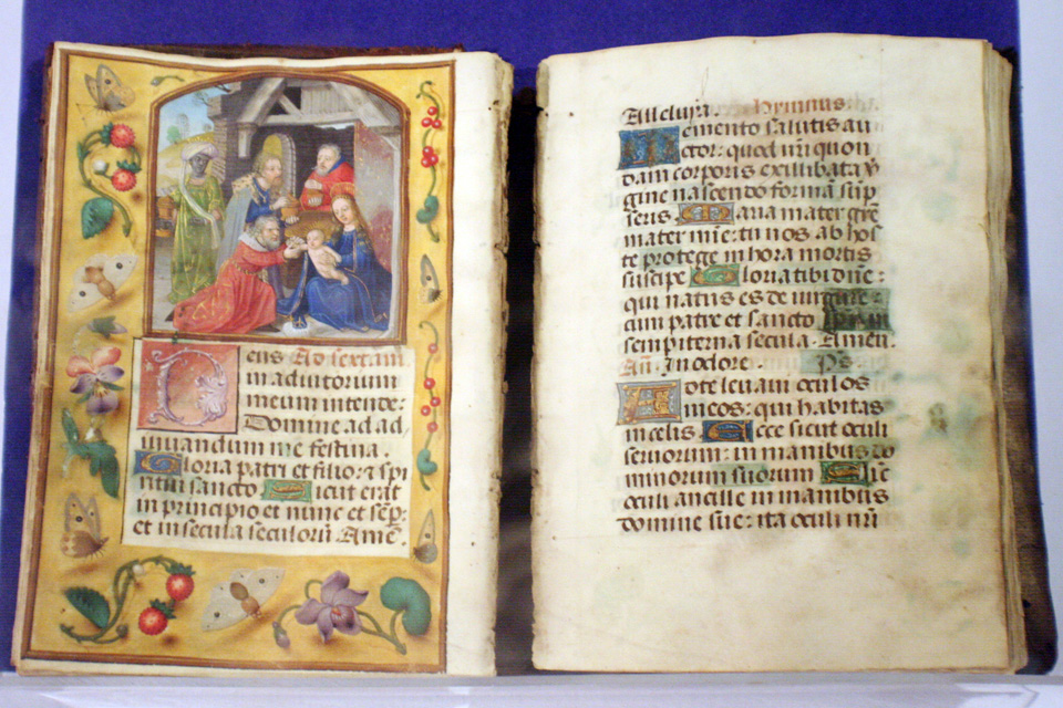 The ancient devotional manuscript, published not later than 1525, was written in Latin and hand-painted with images of the events surrounding the life of Jesus, and each page could be worth around $1000 according to exhibit secretary Diana Padilla.
