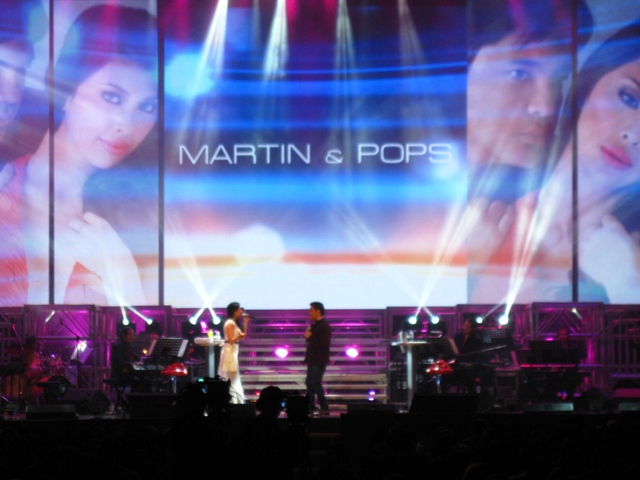 The duets continued to make the audience swoon--especially when Martin and Pops took the stage for a love song medley. Together, the ex-couple proved that whatever happened in their personal lives, their singing remained unaffected and onstage, they still had all the kilig-inducing chemistry that made their fans fall in love with them in the first place. What followed was Martin's solo number, which might have been the only solo that was truly entertaining, perhaps because it wasn't a solo act at all, but one that he shared with his fans. The veteran singer took his performance as a chance to celebrate his 30 years in the industry by singing his greatest hits. He also thanked his fans grandly, descending the stage and walking right into the thick of the crowd, taking time to hug, take photos with, and joke around with the giddy audience. He even shared the mic with special audience members like his son, Robin Nievera, and fellow '80s icon Richard Gomez, who gamely sang a considerable part of one of Martin's best known songs, "Say that you love me" to thunderous cheer and cries of pure kilig. By the time Martin returned to the stage, the crowd was considerably riled up. After that, it was Pops' turn to fly solo, though her performance--a medley of dance hits which included David Guetta's "Titanium," LMFAO's "Shots," and J.Lo's "Dance Again"--was particularly unsettling. The Concert Queen kept a regal bearing and her signature poise from the moment the show started, but for her solo act, the grace seemed ill-fitting. She refused to bring on the raunch that a performance of such songs required, leaving her looking a little too stiff and rather self-conscious on the stage. Foursome finale By the time Martin and Regine broke out in a duet of "Music of the Night" from the popular musical Phantom of the Opera, the crowd had wound down as if they had recognized the denouement, the proximity to the grand finale. The hallmark Broadway song was beautifully rendered into a pop duet, and though at times it felt as though Martin and Regine were trying to outsing each other, when their voices blended towards the end of the performance, the combination packed a powerful punch. Pops soon emerged, following the musical theater vein by giving an emotionally charged performance of "On My Own" from Les Miserables, which more than made up for her lukewarm solo act. Ogie and Martin soon followed with their own Les Miz performances, and the musical theater medley was capped off by a soaring, birit-wrought version of "I Dreamed a Dream" by Regine, which segued into the foursome performing "One Day More" in what felt like a dramatic finale. Of course, after a standing ovation and cries for an encore, the foursome broke out in duets: Pops and Ogie doing "Bakit Ngayon Ka Lang," and Martin and Regine doing "Forever." The show could have ended there and it would have been great. But the foursome continued to sing so that the concert felt a little too drawn-out. Just like the spiels, it simply went on too long. Still, as they hit the last notes of that last song, their energy and palpable chemistry and, of course, their voices which were undeniably great together, proved that at least in this case, four is certainly much better than one. – YA, GMA News