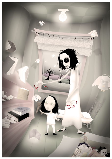 Sta. Maria's illustration of Neil Gaiman's Coraline, that placed third in the 2005 Philippine Graphic Fiction Awards of Fully Booked. (Courtesy of Apol Sta. Maria)