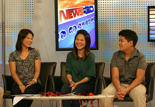 Milette Narciso and her children Justine and Daniel talk about good study habits on News to Go. Photo by Joe Galvez