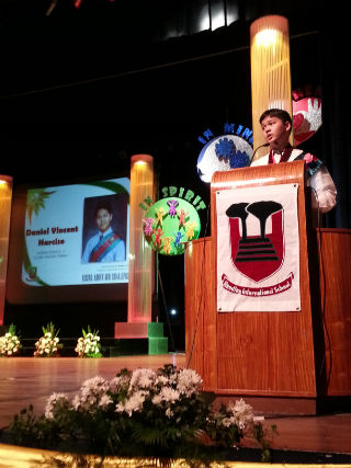 Justine Narciso delivers her valedictory address at the Reedley International School 2013 graduation. Photo from the Narciso family