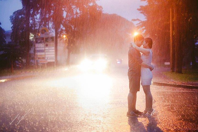 Lloyd and Ivy in the rain, taken by Nikko Quiogue of Pixelfish Concept and uploaded to the photo studio's Facebook page as well as that of GMA's Youscoop.