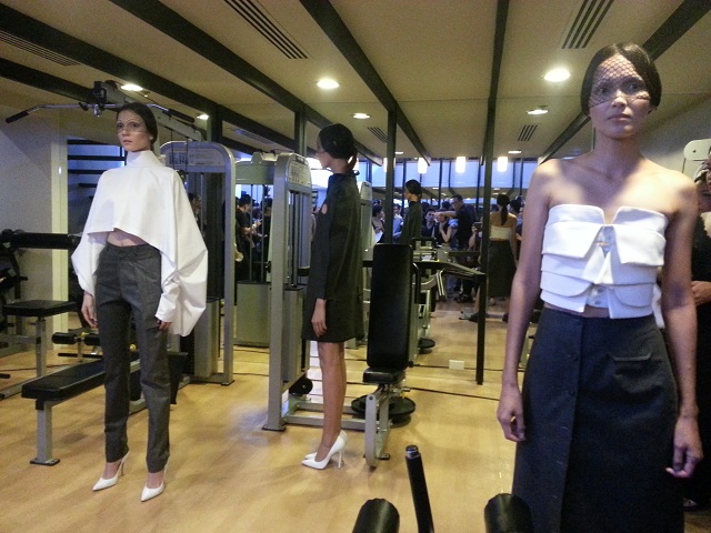 The event was a test to see if you were enough of a fan of the designer's work to trudge up and down the stairwell to check out all the rooms with displays in them. The main event, the fashion show, was also partly an experiment to see how many sweaty, expensively-dressed scenesters you could fit into the building's cramped, split-level gym on the fifth and sixth floors (the vague answer: several dozen).
