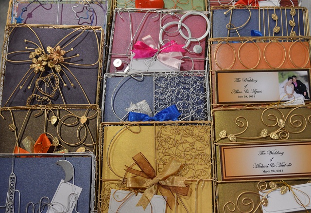 A wide array of wedding souvenirs was featured during the Wedding Expo at the SMX Convention Center – from rosaries to chocolates to perfumes, and aroma oil burners.