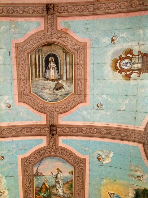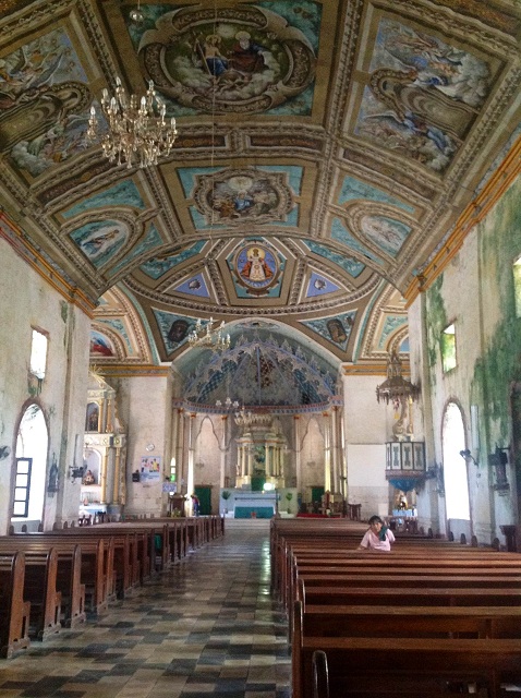 Earlier, we had visited the Santa Monica parish church in Alburquerque, which is reputed to have some of the most well-preserved frescoes in Bohol. Bamboo scaffolding criss-crossed the columns separating the middle and side aisles in the much bigger church, which was under restoration. The paintings of saints and other religious themes were indeed much clearer here, giving the viewer a deeper appreciation for the devoutly Catholic traditions of the province.