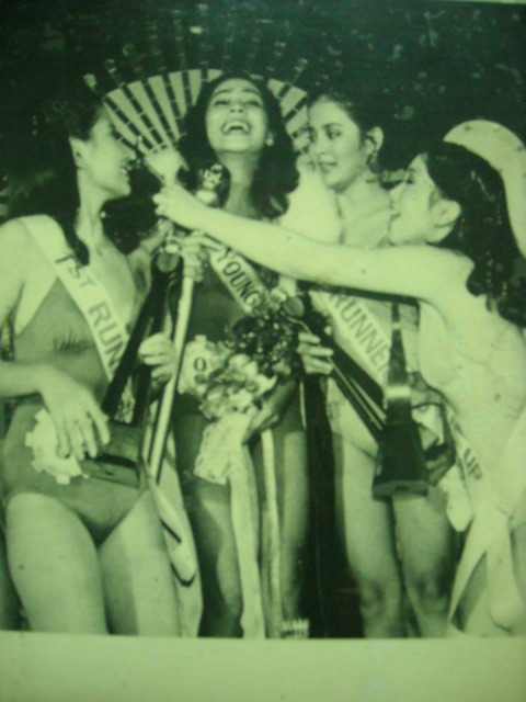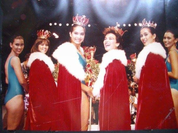 Joyce Ann Burton (center) as Bb. Pilipinas Universe 1985.