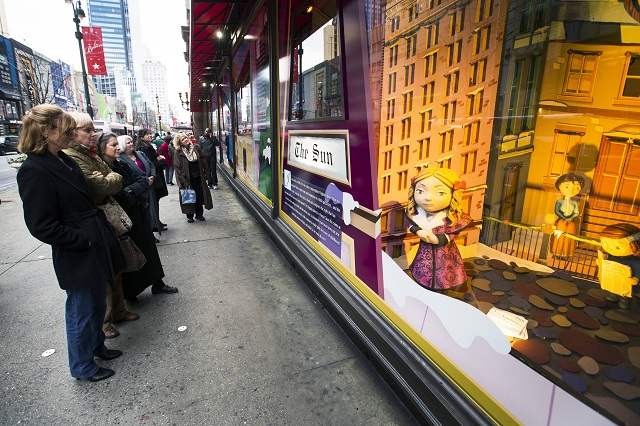 Pedestrians stop to look at holiday window displays at Macy's flagship store in New York. The window displays are the secret weapon of brick-and-mortar retailers, luring shoppers away from their computers at a time when ecommerce is more popular than ever. REUTERS/Lucas Jackson