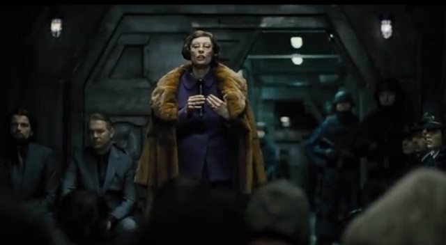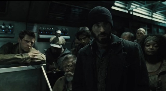 We are dropped into the suffocating confines of a train. This is one of the brilliant things about the film. The conceit is what remains of humanity inhabits this train, and on this train there is a clear and enforced class divide where the head of the train runs things and in the tail are the dregs of society forever kept in their place. The rest of the world is gone, frozen due to climate change. The train is run by its designer who is treated like a god, who reinforces and controls the "balance of the system" through authoritarian means under the guise of benevolence.