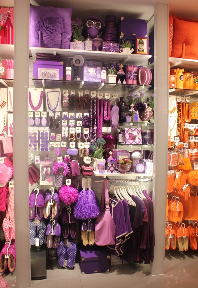 The purple wall at Roy & Biv, 'an organized feast for the shopper's eyes'