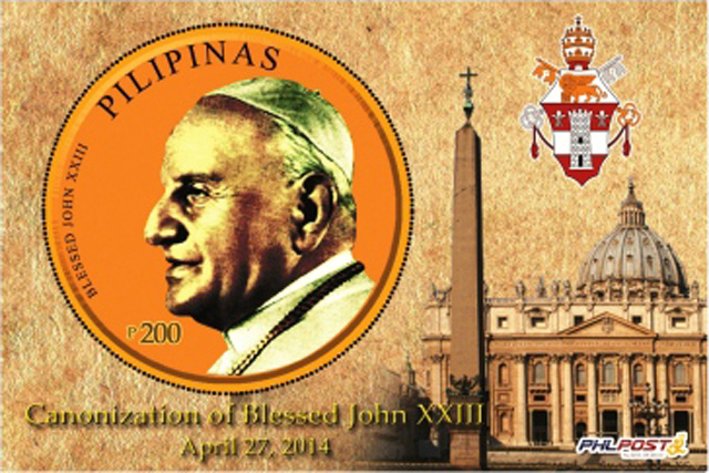 PHLPost said it has produced 10,000 pieces of Blessed John Paul II souvenir sheets and 5,000 copies for Pope John XXIII. — Joel Locsin/VC, GMA News