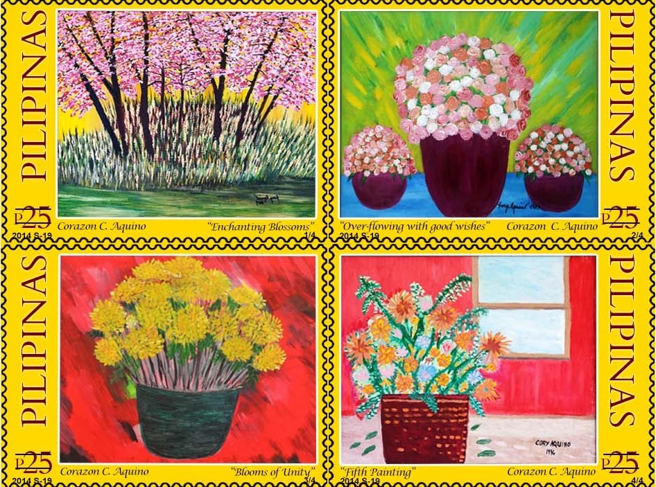 The paintings to be featured on the stamps are "Enchanting Blossoms" and "Fifth Painting," owned by Metrobank's George Ty; "Over-flowing with good wishes," owned by Miguel Belmonte; and "Blooms of Unity" owned by Lilia de Lima.