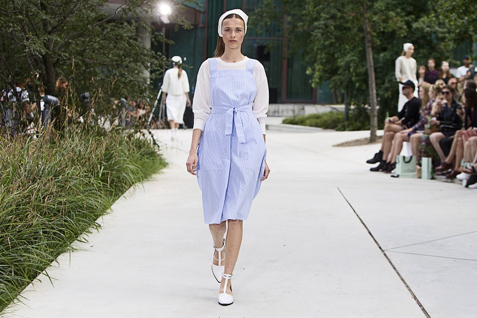 As if to emphasize the down-to-earth approach, Designers Remix by Charlotte Eskildsen was presented in the concrete backyard of investment bank SEB, where models were dressed in mostly white and beige knee-length dresses or plain, loose shorts.