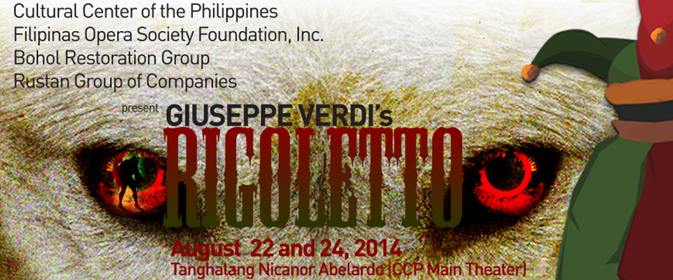 The three-act opera was a creative collaboration among artists from two countries: South Korean conductor Jae Joon Lee led the Philippine Philharmonic Orchestra (PPO), while Floy Quintos was the stage director. The production starred South Korean opera stalwarts Daesan No (baritone, as the hunchback court jester Rigoletto), Yun-Kyoung Yi (soprano, as Rigoletto's beautiful daughter Gilda), and Jae Wook Lee (tenor, as the debauched Duke of Mantua) as well as Filipino performers Ronan Ferrer (tenor), Nenen Espina (soprano), Jun Francis Jaranilla (bass), Thea Perez (soprano), Noel Azcona (baritone), the male members of the Coro Tomasino, and the Philippine Ballet Theater.