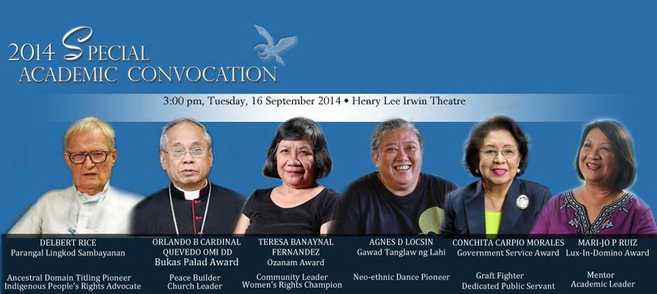 Six individuals received Traditional University Awards as part of Ateneo de Manila University's (ADMU) annual Special Academic Convocation at the Henry Lee Theater on campus, Tuesday.
