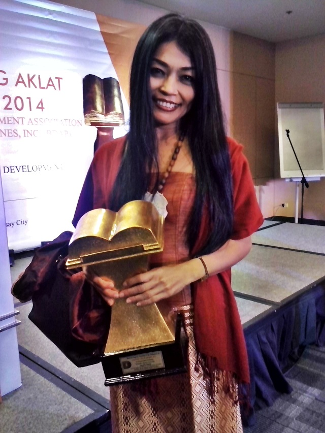 Grace Nono with her award for best book in Arts and Culture for 'Song of the Babaylan'