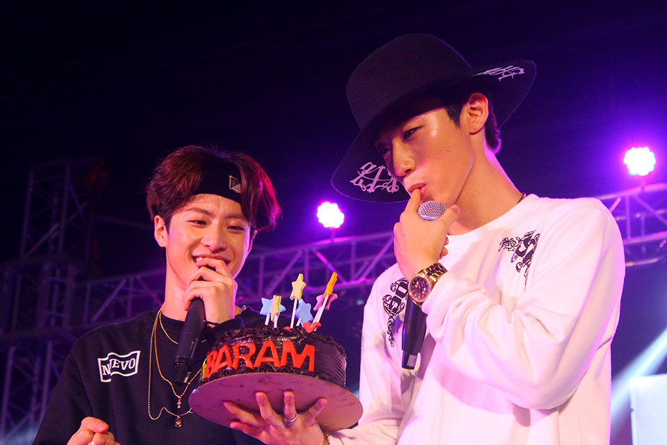 Baram of BIGSTAR celebrated his 24th birthday during the concert. The fans gave him a chocolate cake and all together sang "Saengil chukha hamnida" (Happy Birthday).