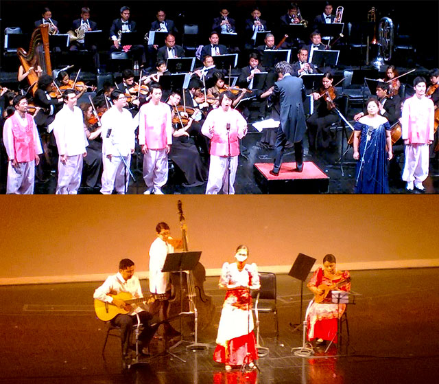 Remembering the good old days: the Korean Countertenor Ensemble and soprano Park Min-Joung sing about Mount Kumgang (top) and the Sidhaya Rondalla perform 'Mutya ng Pasig' (below).