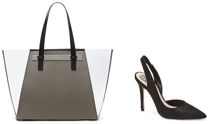 Vince Camuto's Jacepool Tote in Ash Gray and Sassa Fishskin Shoe in Light Black. Vince Camuto