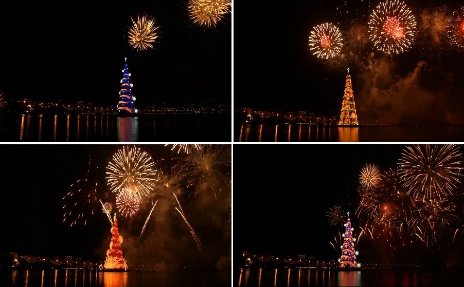 Close to 200,000 tourists and locals flocked to the Rodrigo de Freitas Lagoon to watch the 542 ton, 85-meter-tall (279 feet) tree illuminate in a burst of color and lights.