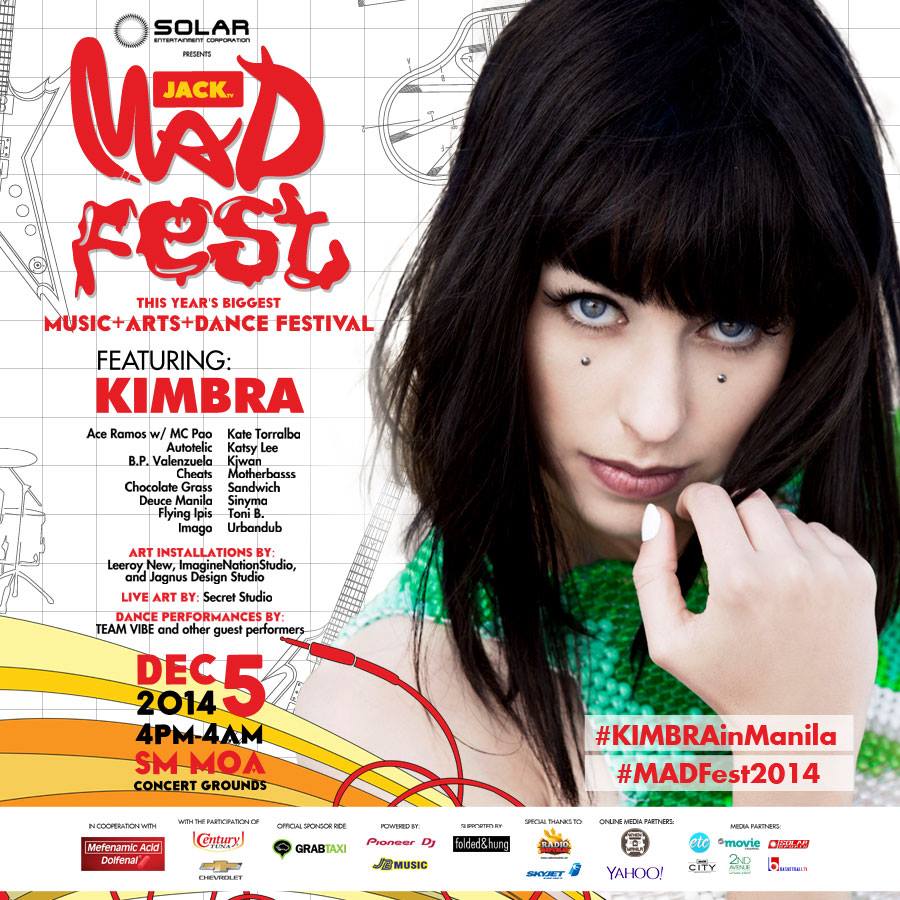 Catch Kimbra at the MAD Fest 2014 at the SM Mall of Asia concert grounds, Block 12 on December 5, from 4 p.m. to 4 a.m.