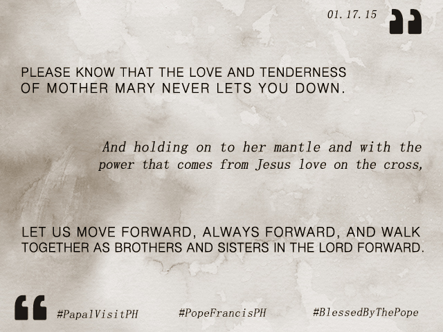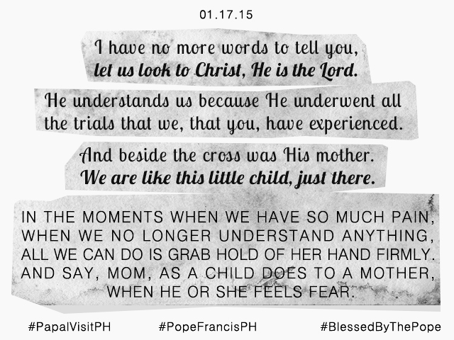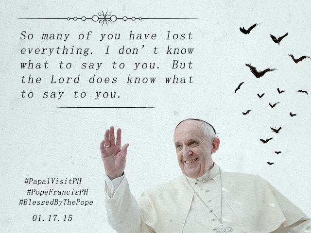 Pope Francis comforted victims of typhoon Yolanda in his homily at Daniel Romualdez International Airport in Leyte on Saturday morning. GMA News Online selected some of his most inspiring words and turned them into postcards below.