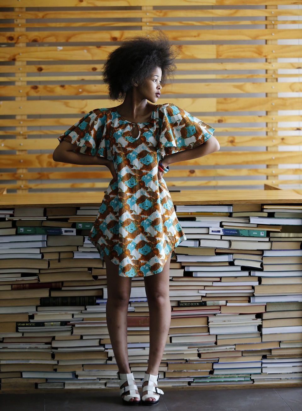 South African model Lulama Mlambo poses in clothes made by Kisua.com, launched by Ghanaian entrepreneur Samuel Mensah, in Johannesburg, February 2, 2015. When Michelle Obama and Beyonce Knowles attended high-profile events in clothes made by African designers, it was a sure sign that the continent's vibrant style has arrived on the world stage. REUTERS/Siphiwe Sibeko
