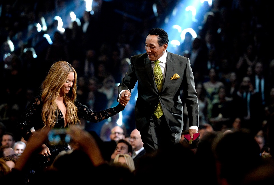 Singer Beyonce accepts the Best R&B Performance for "Drunk In Love" from singer Smokey Robinson onstage during The 57th Annual Grammy Awards at the at the Staples Center on February 8, 2015 in Los Angeles, California. Kevork Djansezian/Getty Images/AFP