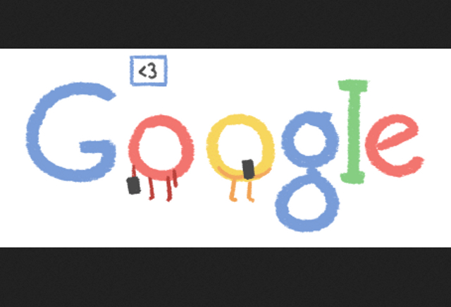 "Whether a time for a romantic date, to catch up with friends, or catch up on cat videos, Valentine's Day is a good excuse to connect with the world around you. As nerds, the doodle team wanted to sweeten up our homepage with ways in which technology brings people together," Jennifer Hom and Olivia Huynh said.