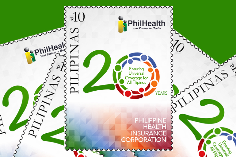 PHLPost said the 20th Anniversary commemorative stamp features the agency's 20th anniversary logo and slogan “Ensuring Universal Coverage for All Filipinos.”