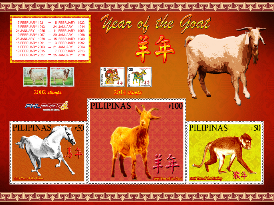 Stamp collectors can now welcome the Year of the Goat with the Philippine Postal Corp. issuing souvenir stamps to mark the occasion.