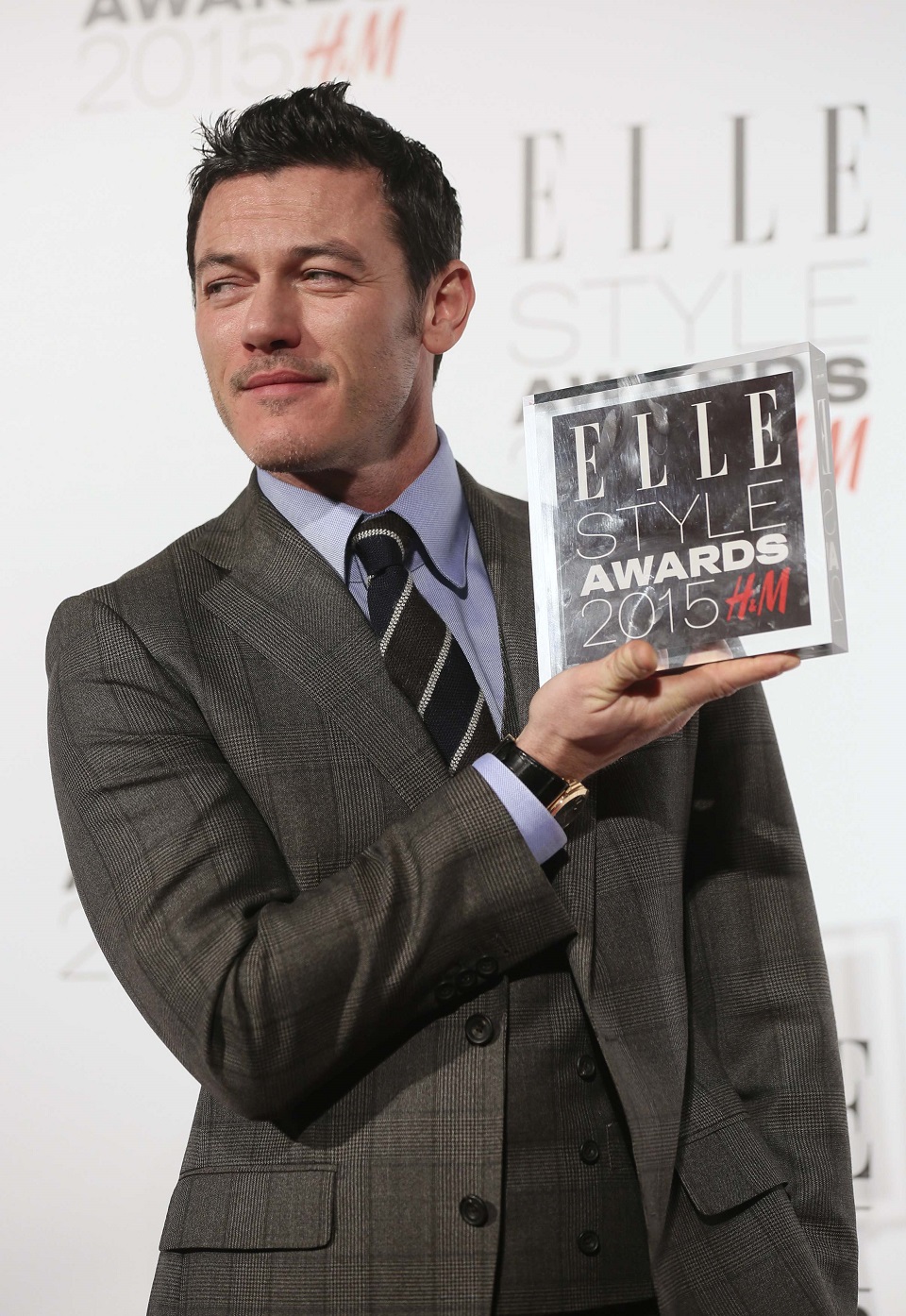 Actor Luke Evans, recently seen in the final "Hobbit" film, wore a tailored three-piece suit. He offered a glimpse into his busy schedule: "Yes, so the next film that I've got coming out is called 'High-Rise,' which is a Ben Wheatley direction with Tom Hiddleston, Sienna Miller, Jeremy Irons, Elisabeth Moss. Very, very, very cool film. And then I leave tomorrow, Thursday to go shoot a movie in LA called 'Message from the King' with Chadwick Boseman and Alfred Molina. Then I go to Budapest to shoot a movie called 'SAS: Red Notice' for nine weeks. And then I go to New York to shoot a movie called 'Three Seconds,' and that's my year done."