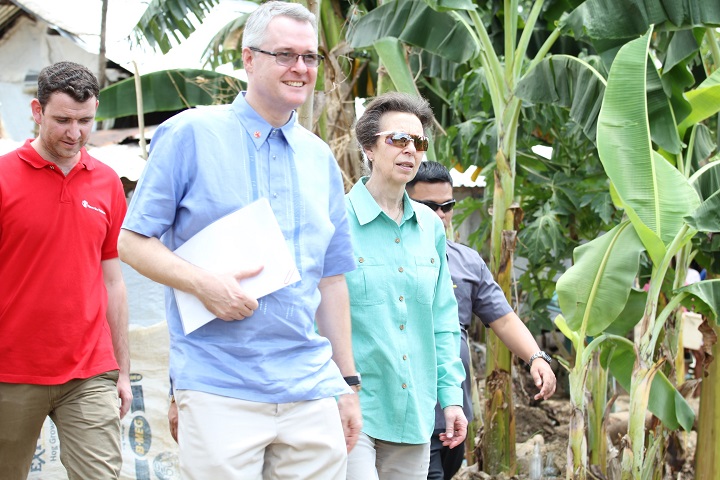 Princess Anne walks with Save the Children Philippines country director Ned Olney to the house of one of the organization's beneficiaries in Brgy. Tagaytay.