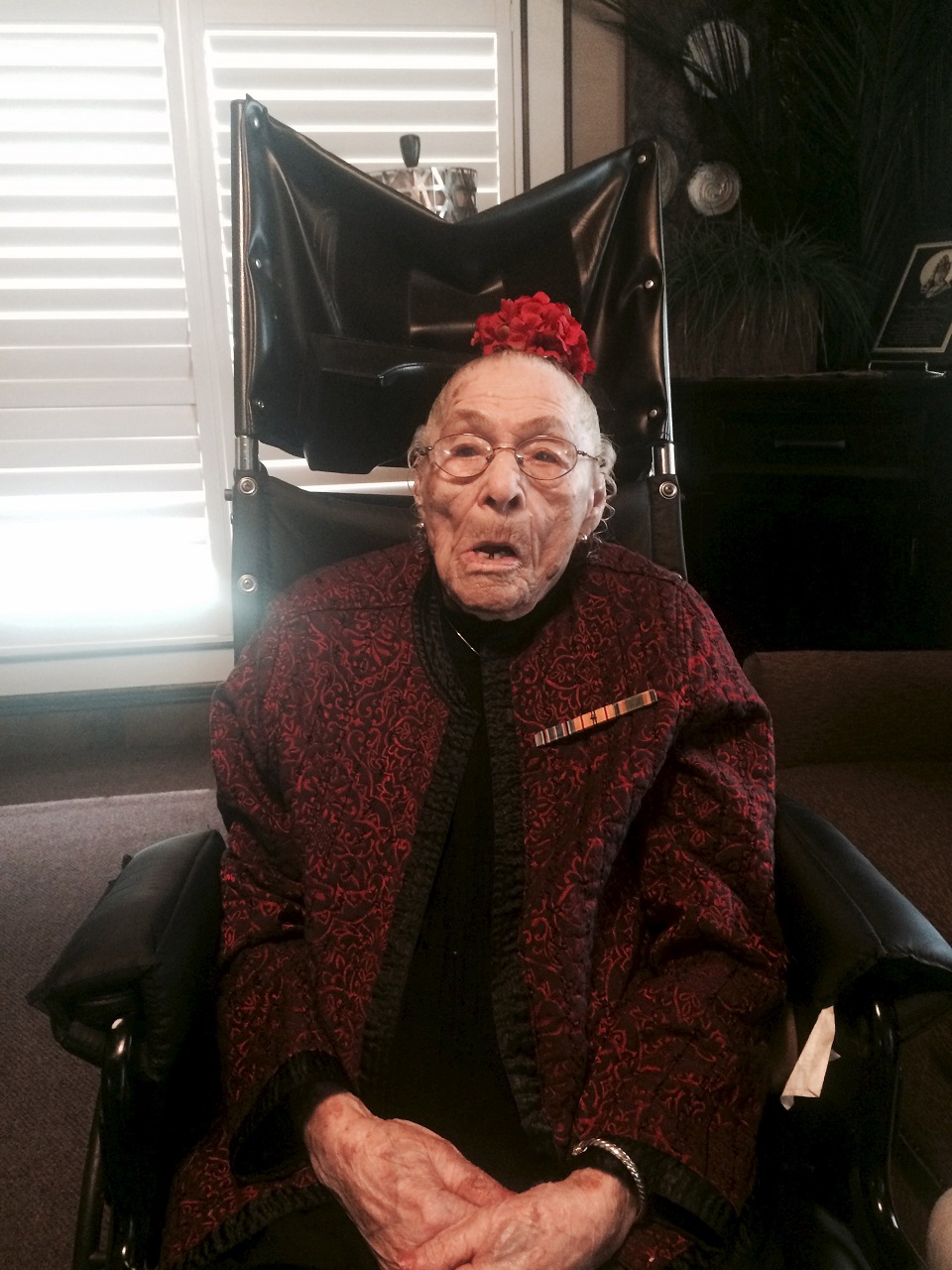 Gertrude Weaver is pictured Camden, Arkansas in this undated handout photo obtained by Reuters April 1, 2015. Weaver, at 116 years old, became the world's oldest person on April 1 with the death of Misao Okawa in Japan. REUTERS/Silver Oaks Health and Rehabilitation Facility