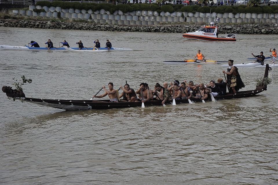 After the 40-minute trip, upriver and against the current, Harry arrived in central Whanganui, joking that he was "knackered."