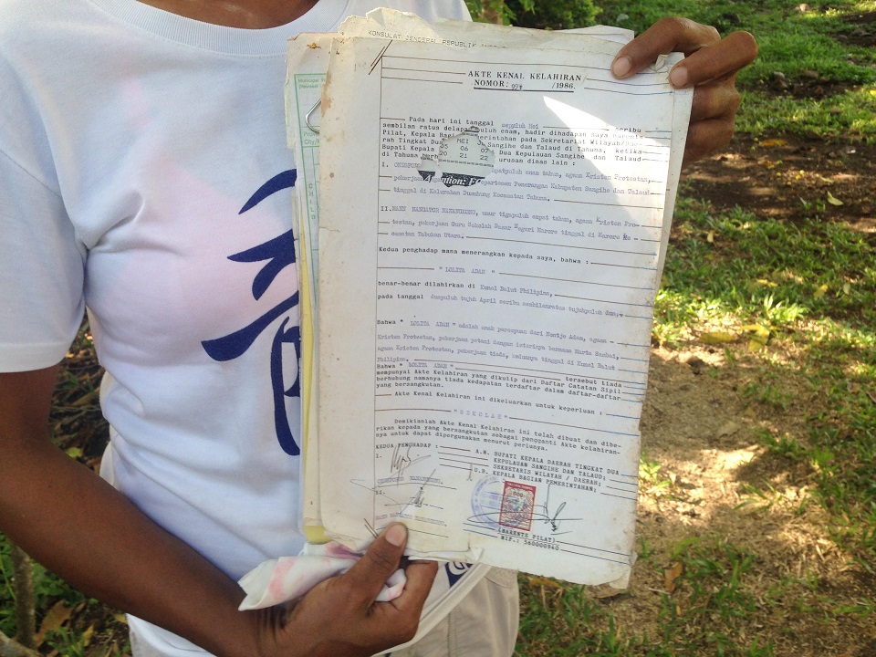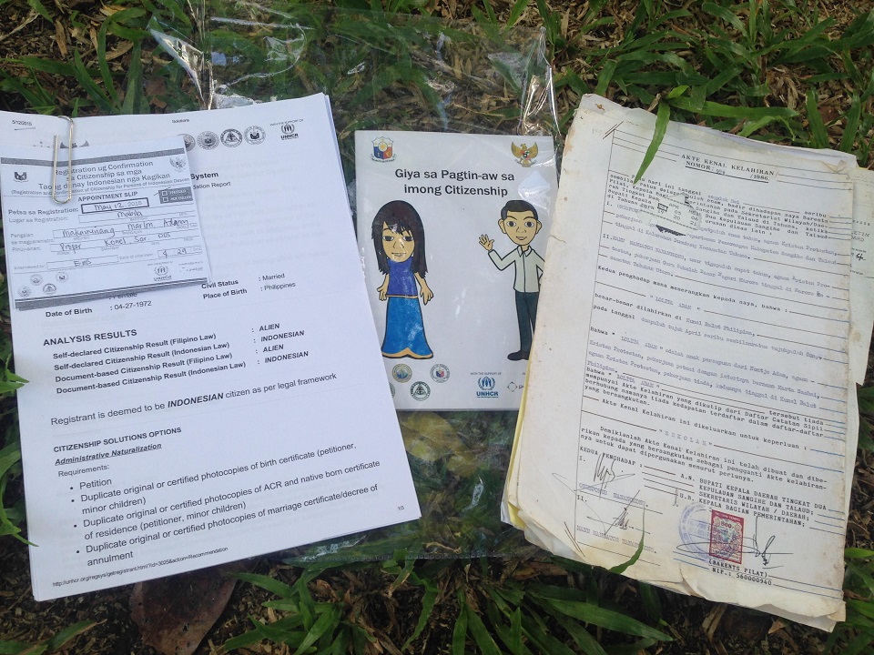 Lolita Makaminang holds documents proving that she is an Indonesian. She said she owes the Filipino people a lot for embracing her and her four children, who were allowed to attend school despite lacking necessary documents.
