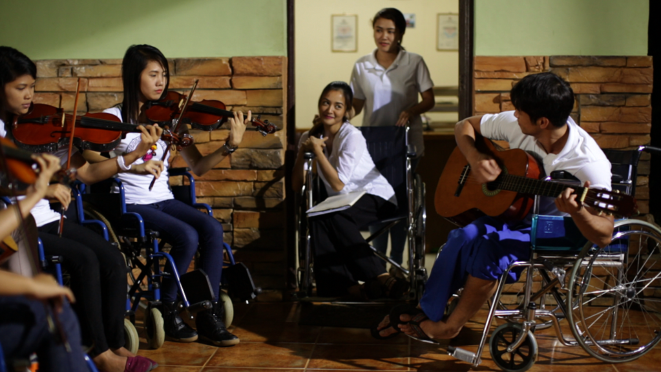 Then she meets Rolly, a member of the school's rondalla. They do not like each other at first, but begin to warm to each other. Rolly, too, is a polio survivor.